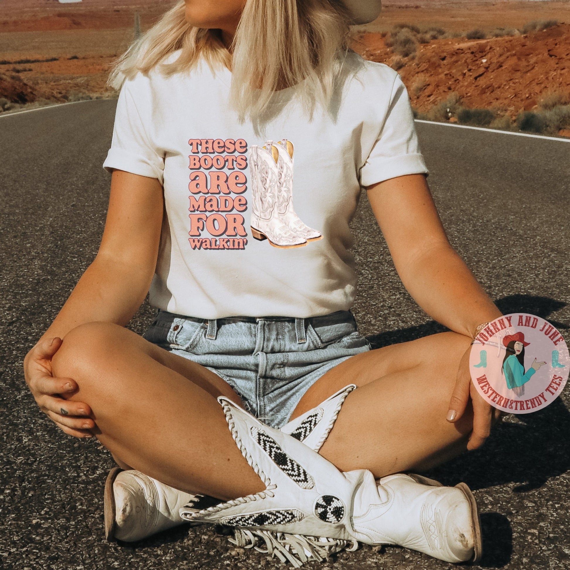 This classic shirt features a cheeky take on the iconic These Boots Are Made For Walking lyric by Nancy Sinatra. Crafted with premium cotton, it's comfortable and durable for everyday wear. Let everyone know you mean business!